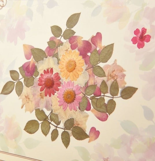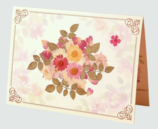 本商品は、水彩画のようなやさしい色合いの背景に、4輪の鮮やかなおし花を施した電報台紙です。「就任」や「栄転」といったビジネスでのご利用はもちろん、「結婚」、「誕生日」、「記念日」等、さまざまなシーンでご利用いただけます。