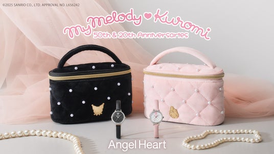株式会社ウエニ貿易(本社:東京都台東区、代表取締役社長:宮上光喜)の腕時計ブランド「Angel Heart(エンジェルハート)」はブランド設立20周年を迎え、同じく周年を迎える、50周年のマイメロディと20周年のクロミとのコラボレーションウォッチを2月21日(金)に発売します。また、本商品には時計ボックスの代わりとなる時計のデザインとリンクしたふわふわバニティポーチが付属します。