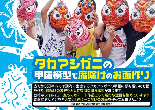 沼津戸田地区では古くから、タカアシガニの甲羅を使ったお面作りが、魔除けの信仰と深く結びついた伝統行事として行われてきました。