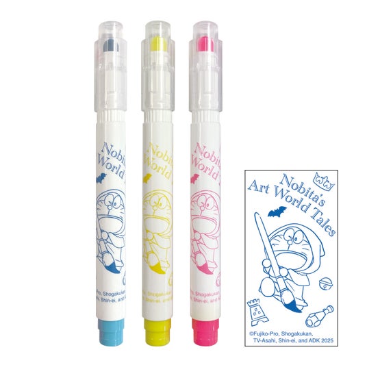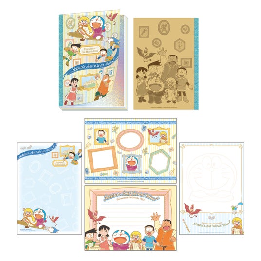 今回発売するのは、映画に登場する衣裳を着たドラえもんや、映画のオリジナルキャラクターが描かれた10アイテムです。3/1(土)から、きらきらメモ・ミニダブルファイル・レターセットの3アイテム、3/7(金)から、アクリルペンスタンド・キャンバス缶バッジ2種・ポーチ・プラコップ・ダイカットタオル2種・蛍光ペン・ロケット色鉛筆の7アイテムを、いずれも数量限定で販売いたします。ぜひこの機会にお買い求めください。