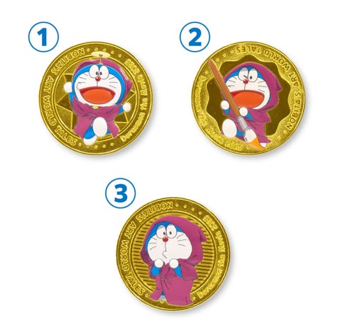 ポップコーン+ソフトドリンクに加えて「ドラえもん」の「メダル」3種と、「合金チャーム」3種の計6種類から好きなアイテムを1つ選べるスペシャルセットです。