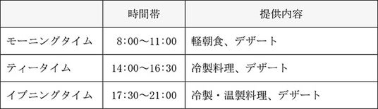 営業時間のうち、以下の時間帯は軽食をビュッフェ形式でご提供します。