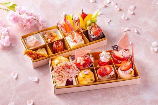 ご自宅でも春の味わいを楽しめるテイクアウトアフタヌーンティー。手土産やお花見にも最適なスイーツとセイボリーを詰め合わせました。