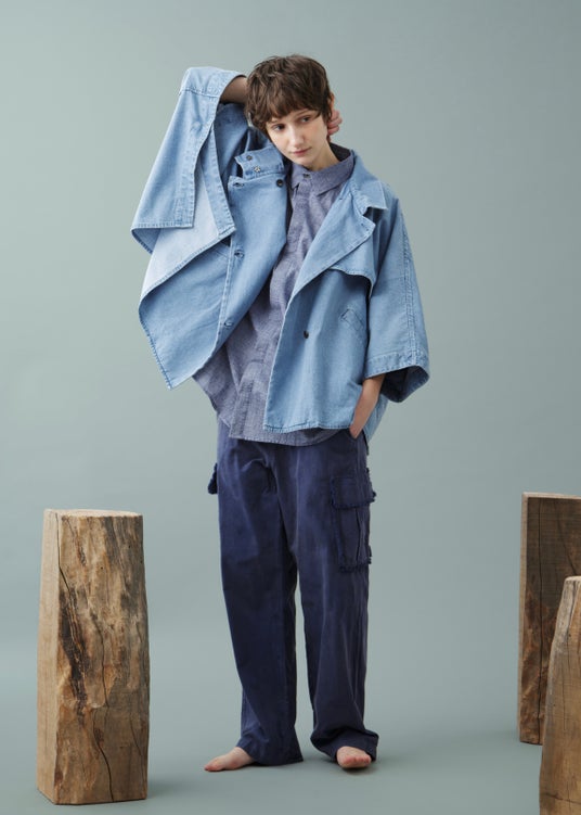 (TOPS) Matou Poncho Denim ¥51,700 (INNER) Asymme Side Long Shirt Summer Oxford ¥34,100 (BOTTOMS) Play Cargo Pants Washed Khadi ¥39,600