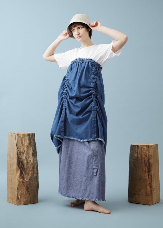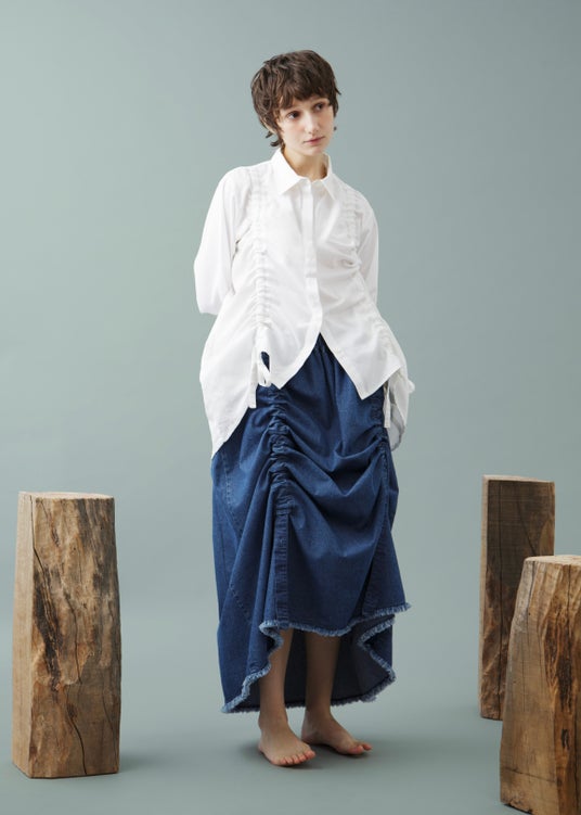 (TOPS) Rhythm Shirt 150tw Khadi ¥37,400 (BOTTOMS) Rhythm Drawstring Skirt Denim ¥34,100