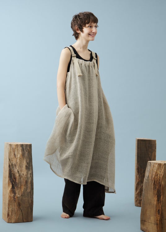 ERIKO YAMAGUCHIは、服やバッグ、ジュエリーなどのファッションアイテムを通じて、デザイナー・山口絵理子自身の世界観を表現するブランドで、2022年9月に誕生しました。「揺れ」や「弛み(たゆみ)」といった天然素材が持つ独特の遊び感を大事にしながら、東洋的な「布をまとう」感覚や、都会にも馴染む現代的なシルエットと色づかいを意識し、ナチュラルなだけではない天然素材の新しい可能性を提案しています。