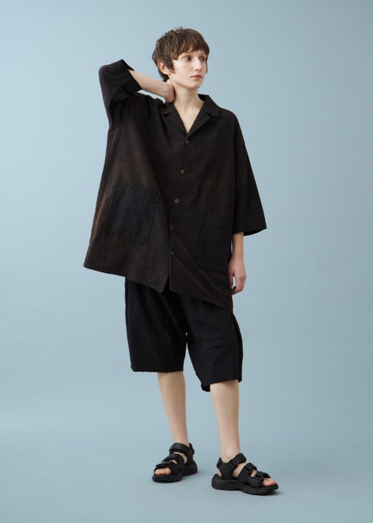 (TOPS) Kaname Open Collar Shirt Washed Khadi ¥41,800 (BOTTOMS) Yuragi Cropped Pants Small Chatai ¥29,700