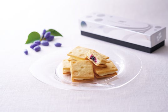 甘酸っぱくフルーティなハスカップを使用したジャムを組み合わせ、濃厚なようでいて爽やかに召し上がりいただける、ハスカップとのマリアージュを楽しむことができるチーズクリームサンドをお作りしました。