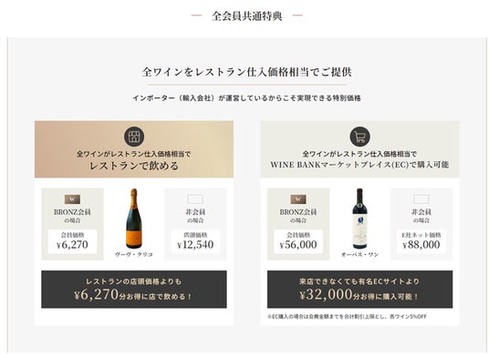 3.会員専用ECサイトではレストラン価格よりもさらにお得にワインの購入が可能に