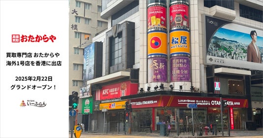 株式会社いーふらん(本社:神奈川県横浜市、代表取締役社長 鹿村大志、以下「いーふらん」)は、いーふらんが展開する買取専門店「おたからや」の海外初となる店舗、香港1号店を2025年2月22日(土)にグランドオープンしましたことをお知らせいたします。