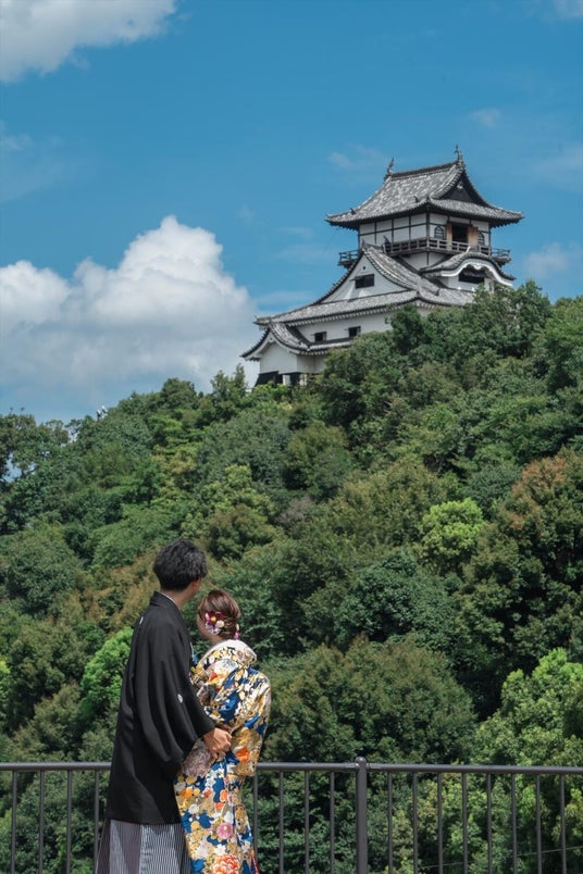 ▲現存する日本最古の国宝天守の勇姿を臨む(日本の結婚式 No.38より 写真提供/ホテルインディゴ犬山有楽苑)
