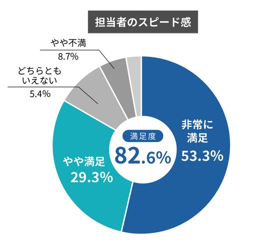 それぞれの項目に対し、「非常に満足」「やや満足」「どちらとも言えない」「やや不満」「不満」の5段階評価です。