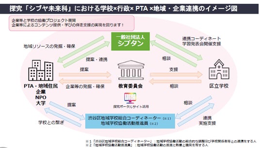 探究「シブヤ未来科」の拡充に合わせて、地域・企業・団体との連携・拡大が必須ですが、そのための打合せや準備等は教員にとって負担になる上、学校と地域、企業・団体とのマッチングには、多大な労力が必要となります。また、地域や企業連携等の取組に学校間の差が生じることが懸念されます。