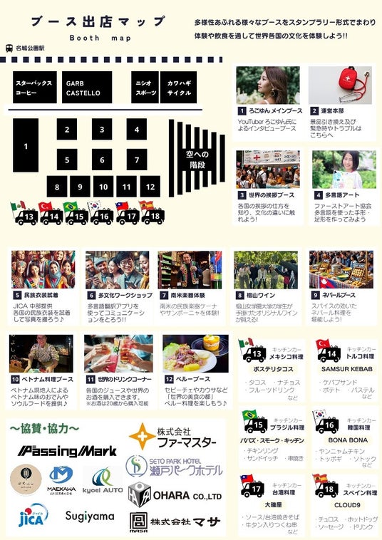 賑やかな会場で楽しくスタンプラリーをしながら、様々な文化を肌で体感しましょう。様々な文化の食事も待っていますので、是非ご家族をお誘いの上、ご参加ください。