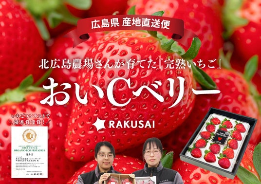 d130004-70-8dbebac6cd6a54c4e553ba3f30e34e69.pdf楽彩株式会社(本社:東京都足立区/代表取締役社長:大崎善保)は、2025年2月24日(月)より北広島農場さんが育てた『おいCベリー』(広島県産)を150セット限定にて予約販売をスタートしました。北広島農場さんが育てた『おいCベリー』は、オーガニック・エコフェスタ2024「身体に美味しい農作物コンテスト」のいちご部門において優秀賞を受賞しています。楽彩のバイヤーおすすめ完熟いちごを産地直送便にてご賞味ください。