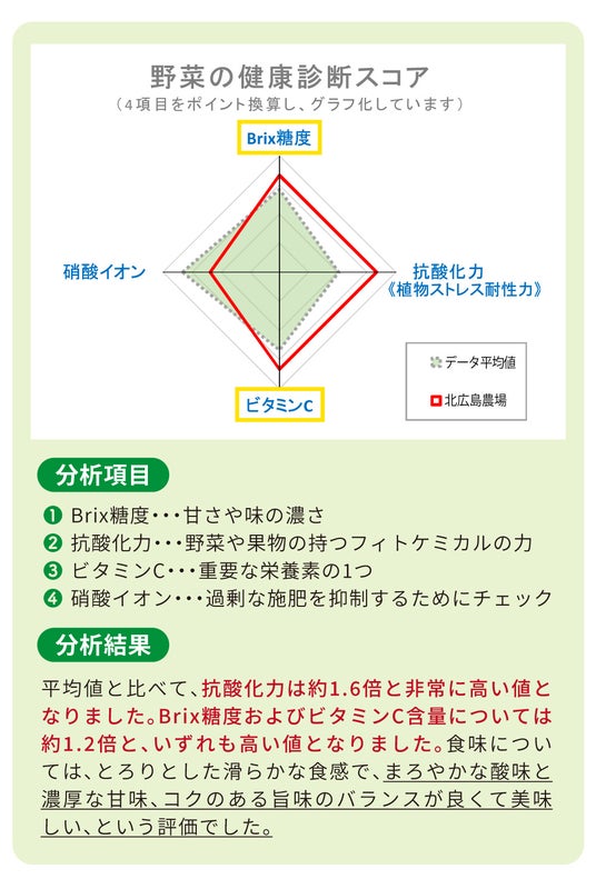 *北広島農場『おいCベリー』野菜の健康診断スコア デザイナーフーズ株式会社調べ