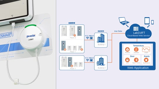 IoTラボ管理ソリューション LabSVIFT検体の長期保存や細胞培養などに使用する保存・培養機器と接続。機器の稼働データをリアルタイムにクラウドに連携することで、 保存物の品質管理と研究者や施設管理者の業務の効率化に貢献。