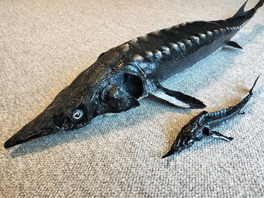 中学生の部 最優秀賞:山本湊介さん「キャビアを産むチョウザメの剥製~成魚と稚魚~」