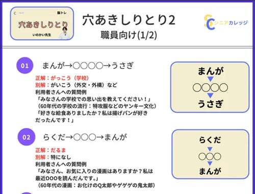 「シニアカレッジ」のもう一つの特徴としては、基本的に利用している現場の職員の要望に応じてオーダーメイドでコンテンツを制作している点です。例えば、事業所から得た要望に答えるべく、「今日は何の日」を毎日配信したり、月に1回のスペシャルレクと題して、クラウド上で素材が購入でき、その素材を使った制作レクを提供しております。これまで、それぞれの事業所がそれぞれ独立してレクを企画されてきましたが、シニアカレッジを通じて、これからは全国の介護施設で1つのレクリエーションを共創する未来を描いています。
