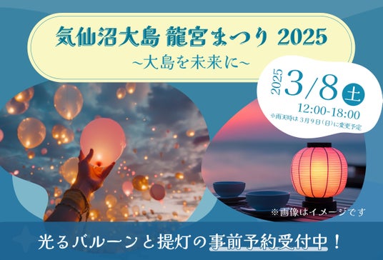 株式会社ファーストイノベーション(代表取締役社長:木ノ根雄志、以下ファーストイノベーション)は、2025年3月8日(土)に宮城県気仙沼市で開催されるイベント「気仙沼大島 龍宮まつり2025 ~大島を未来に~」において、フィナーレで使用する光るバルーンと提灯の事前予約受付を開始いたしました。