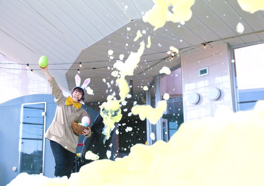 水着風呂エリアの大人気イベント「泡バズーカ」や、ガラスインクを用いたステンドグラス風アート作り「ガラスアート」がイースター仕様になって登場。さらに、館内でイースターエッグのシールを探す「エッグシールハント」などイースターを楽しみながら、春を遊びつくすコンテンツを多数ご用意しています。