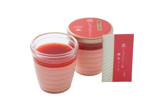 ミルク感のあるやさしい甘さのいちごプリンに、より“いちご感”を感じていただけるつぶつぶとした果肉食感を残した色鮮やかないちごゼリーを重ねました。いちごの甘酸っぱさや果実感を楽しめる2層仕立ての濃厚ないちごのプリンに、専用の練乳ソースをかけてお楽しみください。
