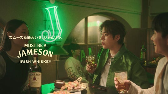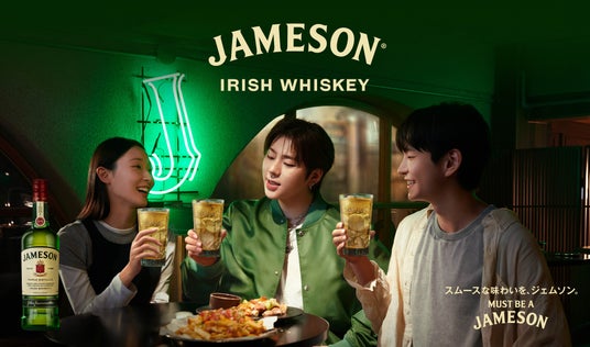 No.1アイリッシュウイスキー(※1)として世界中で愛飲されている「ジェムソン」は、高品質なウイスキーである一方で堅苦しさを持たず、味わいもブランドの価値観も「スムース」で「軽やか」で「親しみやすい」ことが特徴です。「ジェムソン」の新たなグローバルキャンペーン「MUST BE A JAMESON スムースな味わいを、ジェムソン」には、 誰もが楽しめるスムースな味わいと、人々を結びつける気軽さで、「世界をもっと友好的な場所に。」というメッセージを込めています。
