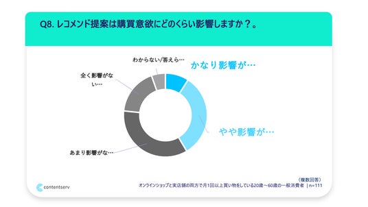レコメンド提案は消費者の購買行動に大きく影響しており、41.5%が「購買意欲に影響する」と回答しました。さらに、45.1%が「自分の好みに合ったレコメンドがあると、そのお店への信頼感が高まる」と回答しており、適切なレコメンドが購買促進だけでなく、ブランドへの信頼向上にもつながることが明らかになりました。
