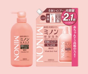 「ミノン全身シャンプー」は、肌のバリア機能を守りながら洗う敏感肌・乾燥肌向けの全身洗浄料として、1977年に発売したミノンのロングセラー製品です。また、薬用ボディソープ市場において9年連続売上第1位(*1)を誇り、肌をやさしく洗いたいというニーズにお応えしてきました。これまでご好評いただいているつめかえ用のラインアップに加え、このたび、ご愛用者様からの「さらにお得な大容量サイズが欲しい」というご要望にお応えし、特に人気の高い「しっとりタイプ」と「泡タイプ」の2品目において、通常サイズの約2.1倍(*2)の大容量サイズを新たに追加発売します。