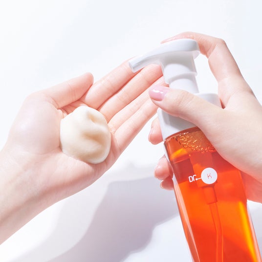 毛穴に詰まった角栓や不要な角質をグリコール酸*が柔らかくし、アミノ酸由来の洗浄成分*が皮脂や汚れとともに優しく洗い流します。落とすだけでなく、レチノール*・ナイアシンアミド*・ビタミンC*などの各種ビタミンと、透明感*を引き上げるグルタチオン*、角質細胞を整え潤いとハリを与えるヒト型セラミド*、マンダリンクリア*を配合するなど、ビタミン研究を長年続けるドクターケイだから生まれたこだわりの処方です。