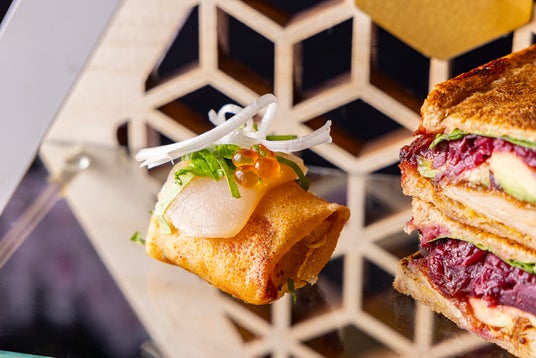 “甘くないアフタヌーンティー” のような洗練されたプレゼンテーションでお酒を引き立てる一口サイズのセイボリーを8種ご用意いたしました。スタンドには、旬の春キャベツの優しい甘味とホタテの繊細な味わいの「春キャベツとホタテのテリーヌ」や、旬の甘さが引き立つ「ホワイトアスパラガスの甘さのムース」など贅沢なお花見にぴったりなセイボリーが並びます。フルーティで軽やかな酸味のロゼワイン「トーレス ヴィーニャ・エスメラルダ・ロゼ」や、爽やかなでクリーンな味わいの「カーザ デフラ ピノグリージョ・ロゼ」など、お気に入りの一杯とのマリアージュを心ゆくまでお楽しみください。