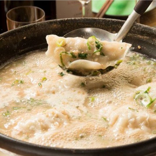 福岡名物!炊き餃子鶏ガラをじっくりと煮込んで仕上げた濃厚な鶏白湯スープで炊き上げた餃子は、焼き餃子とは一線を画す奥深い味わいが魅力。もっちりとした厚手の生地がスープをたっぷりと吸収し、噛むたびに旨味があふれ出します。そのままスープと一緒に味わうもよし、爽やかなポン酢をつけてさっぱりと楽しむのもおすすめです。寒い季節にはもちろん、一年を通して楽しめる逸品です。