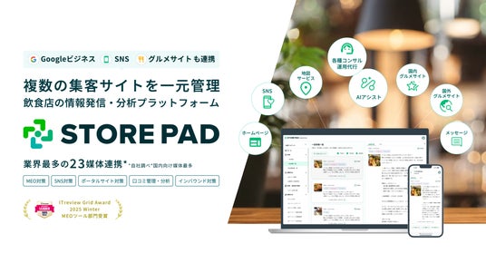 STOREPADは、国内向けサービスとして業界最多*の23媒体と連携している店舗情報発信・分析プラットフォームです。