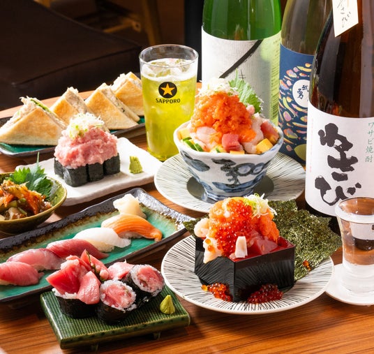 本格寿司とひとクセある海鮮料理を楽しめる、寿司と酒「すしわさび」。こだわりの本鮪や市場直送の鮮魚を使用した握り寿司が、1貫100円からとリーズナブルな価格でお楽しみいただけます。