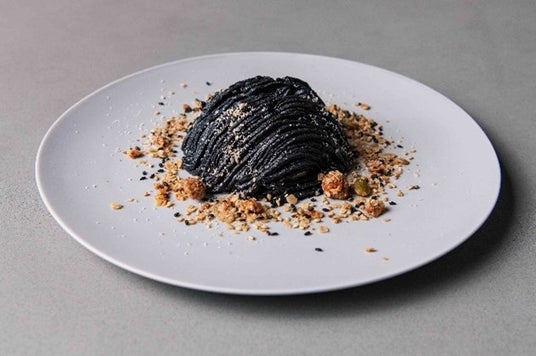 黒ごまモンブラン 1,000円(税込)濃厚な黒ごまクリームとマスカルポーネチーズを合わせたモンブラン。中のチーズクリームにはブラックペッパーを、上の黒ごまペーストには塩を入れることで、味のコントラストを創出し、