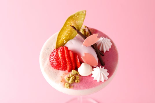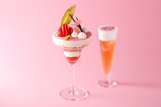 桜をイメージした華やかなパフェです。桜の香りに爽やかなフロマージュブランのクリームを合わせ、アクセントに玄米茶を加えました。桜パフェに合わせたオリジナルドリンクもご一緒にお楽しみください。