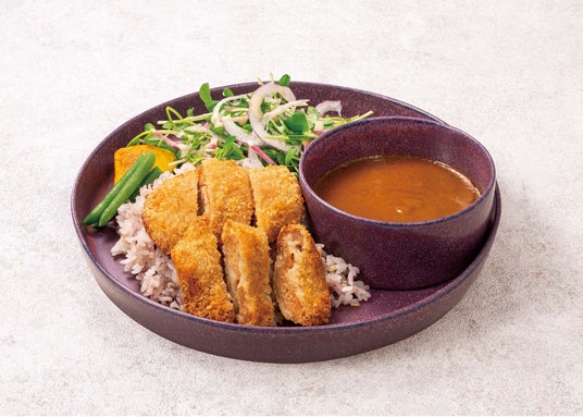 大豆をベースにしたヴィーガンカツはサクサクした歯ごたえが絶品です。