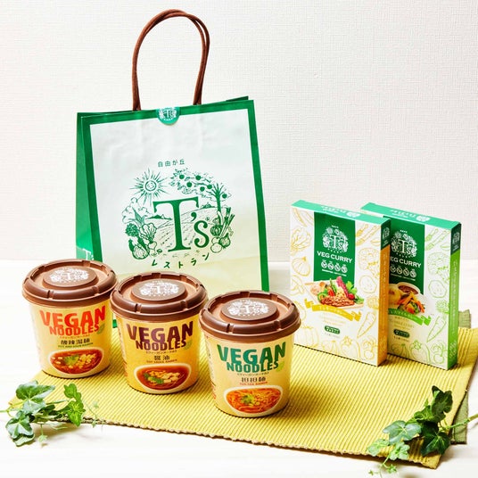 賞品:T’sレストランのカレー2種と、T’sレストラン監修のヤマダイヴィーガンヌードル3種