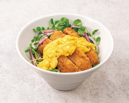 大豆をベースにしたボリュームのあるヴィーガンカツに甘辛だれをたっぷりしみ込ませました。プラントベースのとろとろ玉子と一緒にお召し上がりください。