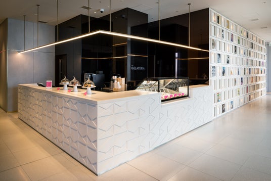 <JAM17 GELATERIA>フレッシュな素材の美味しさをそのままに、彩り鮮やかで上質なジェラートをエシカルに楽しめるジェラートショップ。副都心の摩天楼を望むまちの社交場の入口に賑わう憩いの空間をご用意します。