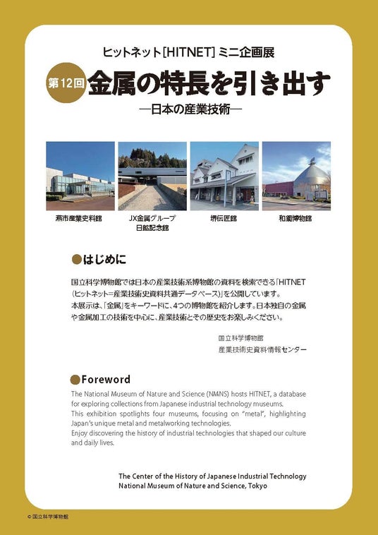 第12回ヒットネット(HITNET) ミニ企画展「金属の特長を引き出す-日本の産業技術-」:https://www.kahaku.go.jp/event/2025/03hitnet/