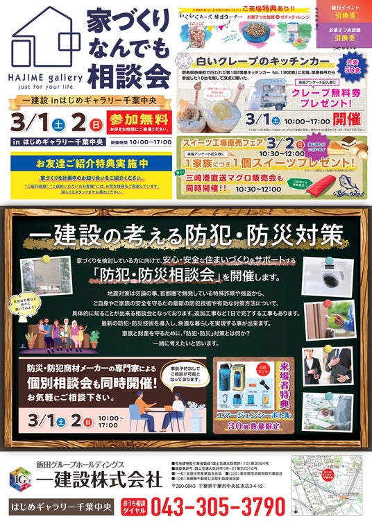 【一建設株式会社】3月1日(土)・2日(日)に「はじめギャラリー千葉中央」で安心・安全な家づくりの相談ができる「家づくりなんでも相談会」を開催