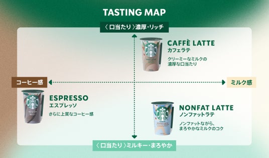 今回、「スターバックス(R) ノンファットラテ」発売に加え、「同 カフェラテ」「同 エスプレッソ」をリニューアルすることで、コーヒーの持つ力を原動力に、新しさやワクワク感、驚きのあるスターバックスならではの体験を提供し、今後も進化を続けてまいります。