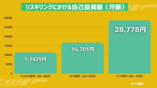 月々にリスキリングにかける金額は全世代で平均約19,000円、中央値10,000円と、多くの人が学びに積極的に投資していることが明らかになりました。