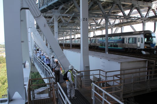 JB本四高速では、瀬戸大橋などの建設に携わった技術者等が瀬戸大橋の建設技術や歴史などを分かりやすく楽しく説明しながら、管理用通路や塔頂にご案内する、「瀬戸大橋塔頂体験スカイツアー」を2025年度も開催いたします。普段立ち入ることができないJR瀬戸大橋線の車輌が間近で見られる管理用通路や、海面上175mの塔頂から見る360°パノラマの絶景を体験してみませんか。