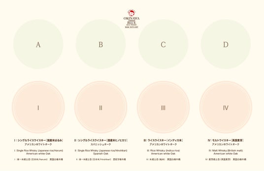 久米仙酒造が製造するウイスキーの原材料にお米を使用し、沖縄という亜熱帯気候で熟成した珍しいウイスキー。その高品質な原酒を4種類ご用意しました。