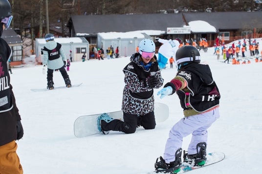 ドナ・カーペンターや藤森由香も子どもたちに寄り添いながら、スノーボード体験機会をサポート
