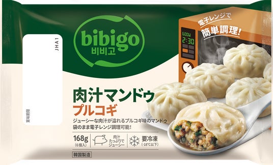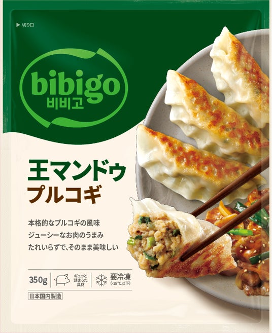 【bibigoの代表商品王マンドゥシリーズに、プルコギフレーバーが仲間入り!】1個約35ℊのBIGサイズで、野菜や豆腐、春雨などのヘルシーな具材がぎっしり詰まった王マンドゥシリーズから、bibigoこだわりのプルコギソースを使用した、ジューシーなプルコギ味のマンドゥが新登場!多様な調理法が可能なので、様々なメニューに活用頂けることに加え、甘辛いプルコギ味でお子様も一緒に家族みんなでお楽しみ頂けるよう仕上げました。