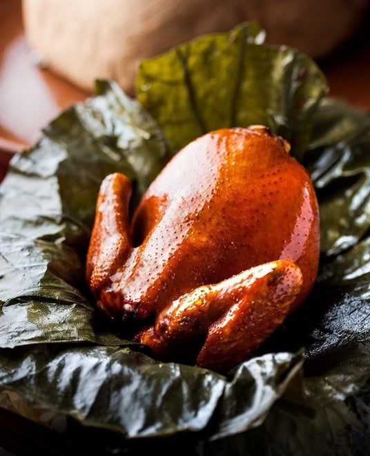 丁寧に下処理をされた国産の丸鶏を一晩、漬け汁に漬け、特製の煮汁で味付けします。さらに蓮の葉で包んでオーブンでじっくり焼き上げ、濃厚なうま味を閉じ込め、柔らかい食感に仕上げました。蓮の香りも加わった風味豊かな味わいをお楽しみください。