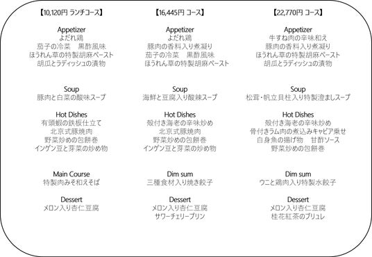 料金・メニュー:ランチコース10,120円、コース16,445円 / 22,770円